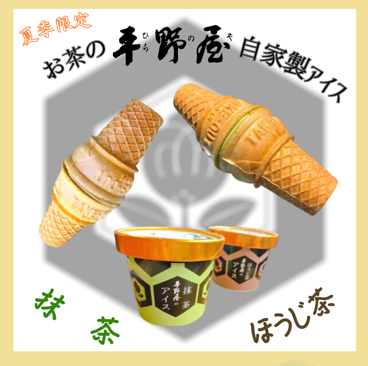 2020年には、ほうじ茶のアイスが誕生し、お客様のお声を元にカップタイプ(抹茶/ほうじ茶)も始めました。